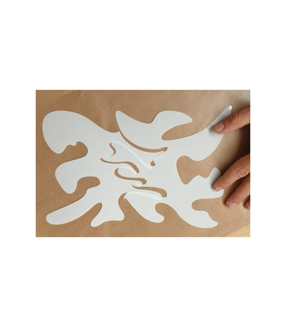 Muy práctica, facilita la técnica gracias a sus numerosas formas y curvas especialmente previstas para realizar la forma de llamas. Además, está totalmente adaptada a pinturas con agua o disueltas.