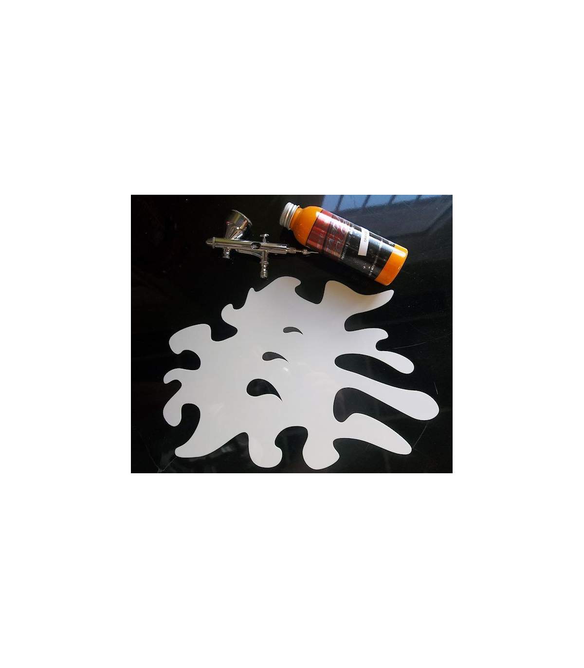 Esta plantilla plastificada en Mylard con un tamaño A4 permite pintar con un aerógrafo efectos de llamas gracias a las pinturas y a las tintas candy transparentes.