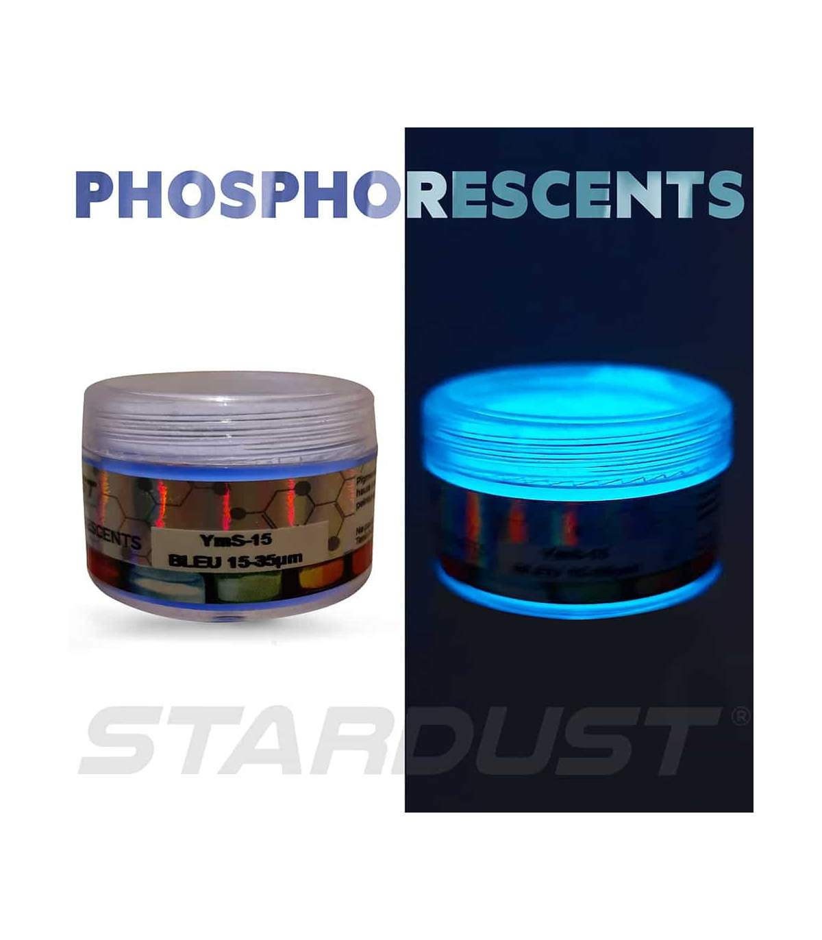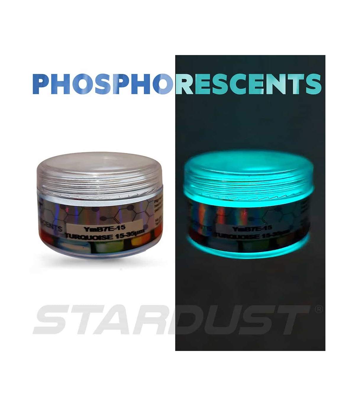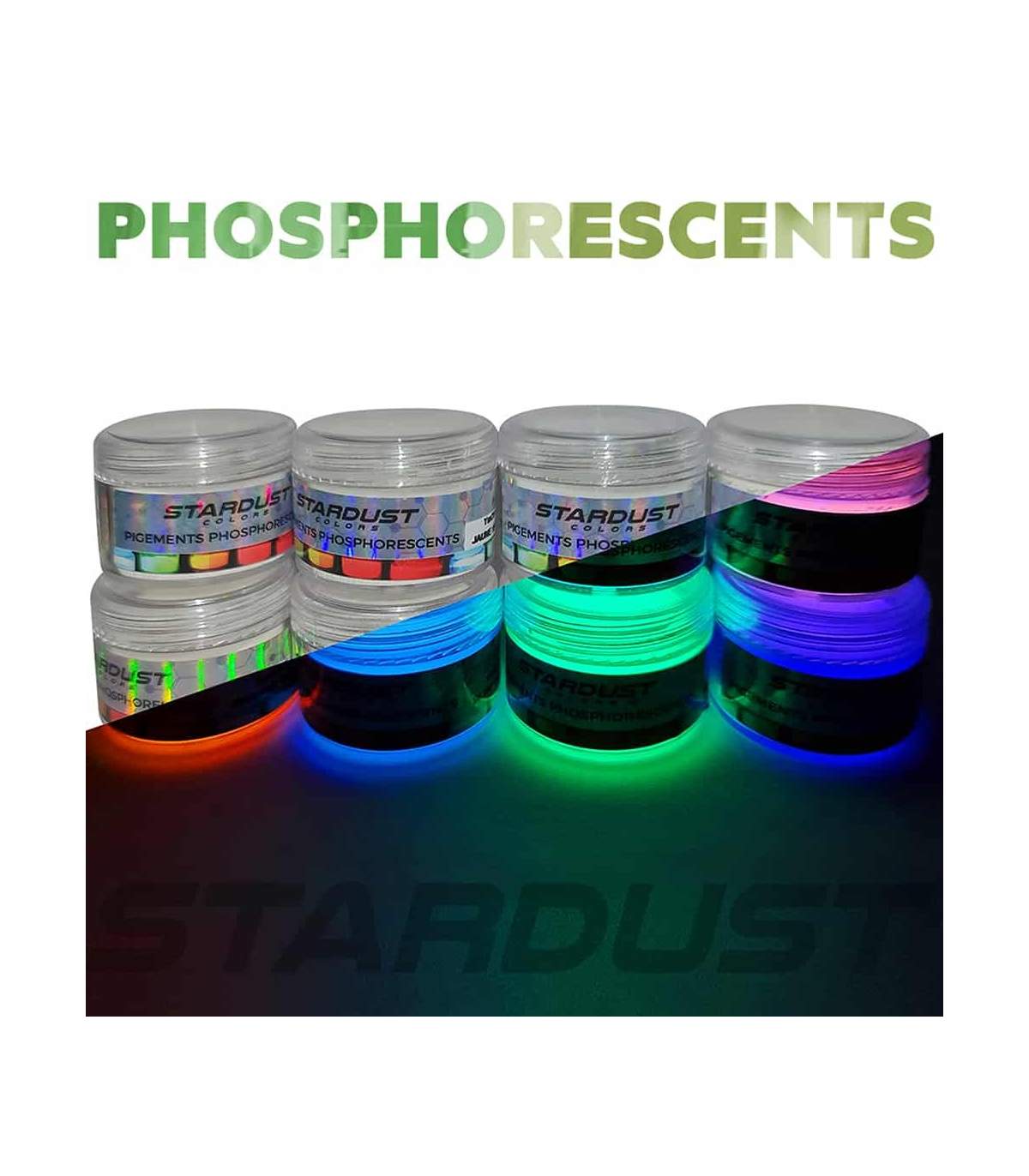 Los polvos fosforescentes son un aditivo de tipo pigmento que proporciona una propiedad luminiscente natural en la oscuridad a todos los materiales transparentes: aglutinantes, barnices, resinas, plásticos, cristales...