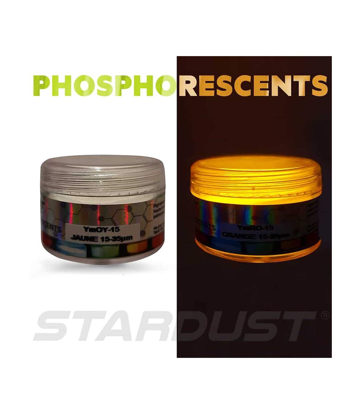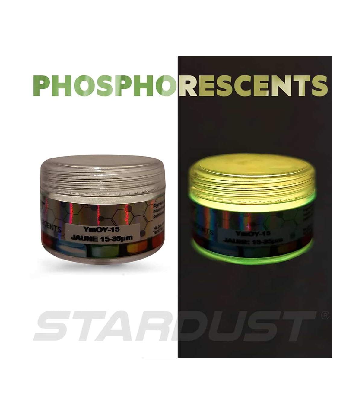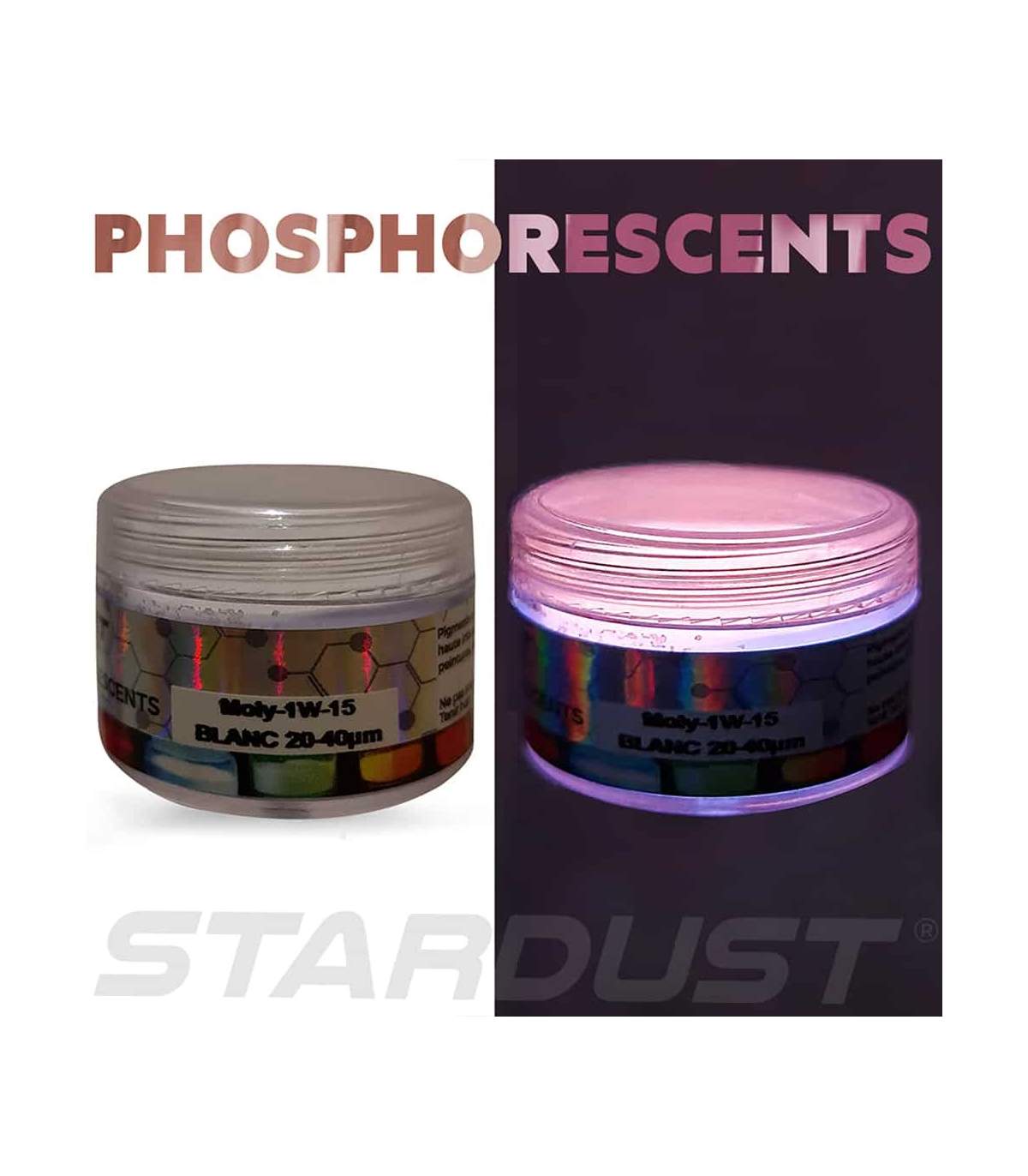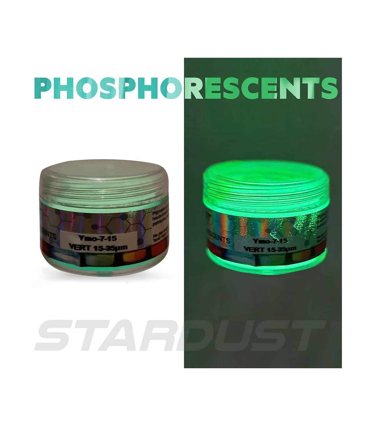 Los polvos fosforescentes son un aditivo de tipo pigmento que proporciona una propiedad luminiscente natural en la oscuridad a todos los materiales transparentes: aglutinantes, barnices, resinas, plásticos, cristales...