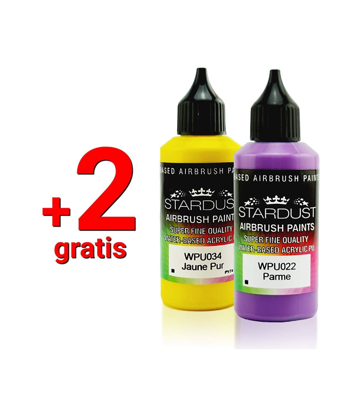 Compra un aerógrafo IWATA y recibe gratis 2 pinturas para aerógrafo a elegir entre la gama Hikari RC de 29 colores o la gama Stardust Pro WPU de 46 colores.
