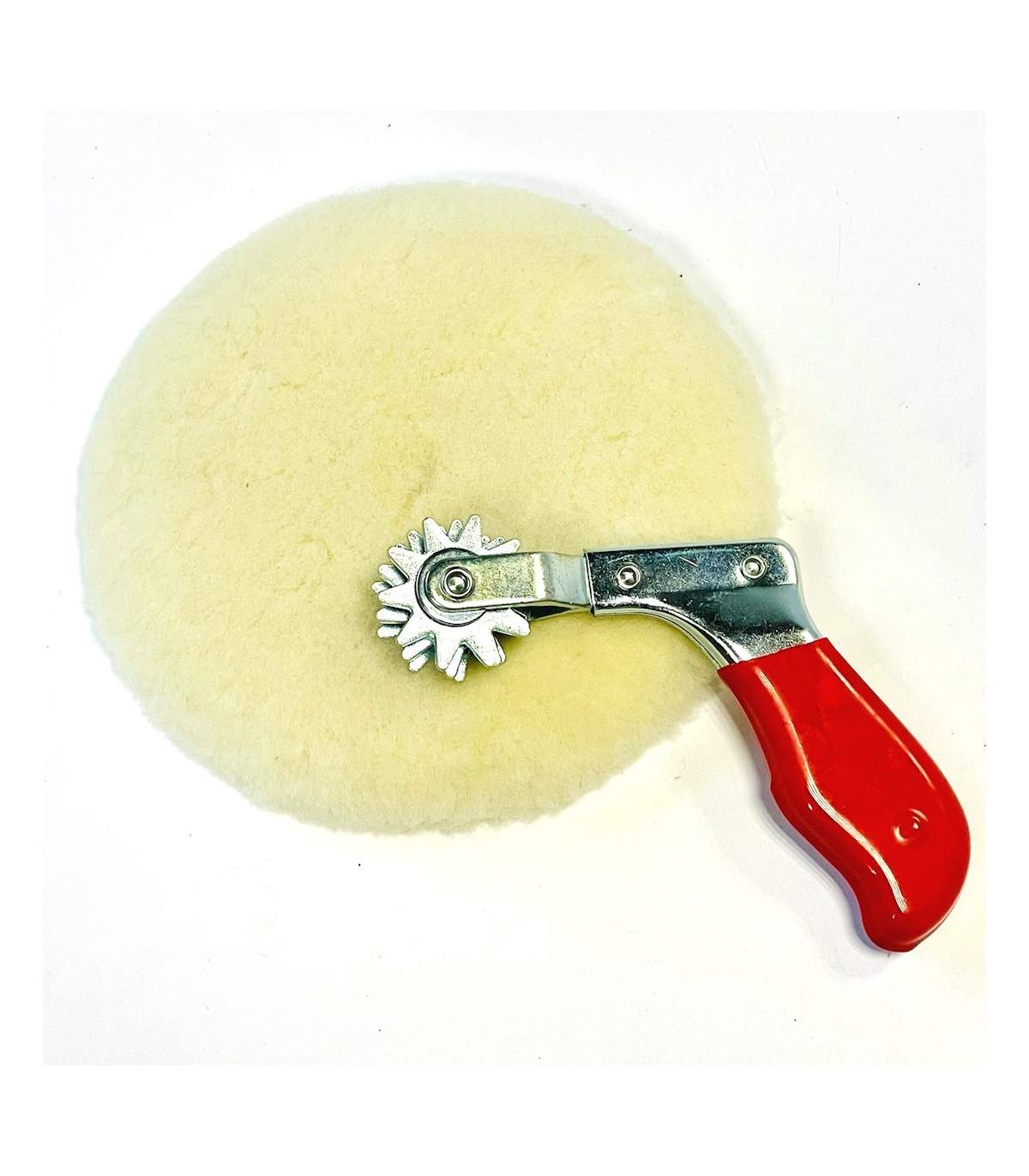 La espuela es una herramienta que facilita la limpieza y el reacondicionamiento de los gorros de pulido de lana de cordero usados. Además, permite reemplazar la fibra de lana y eliminar los restos de pulido.