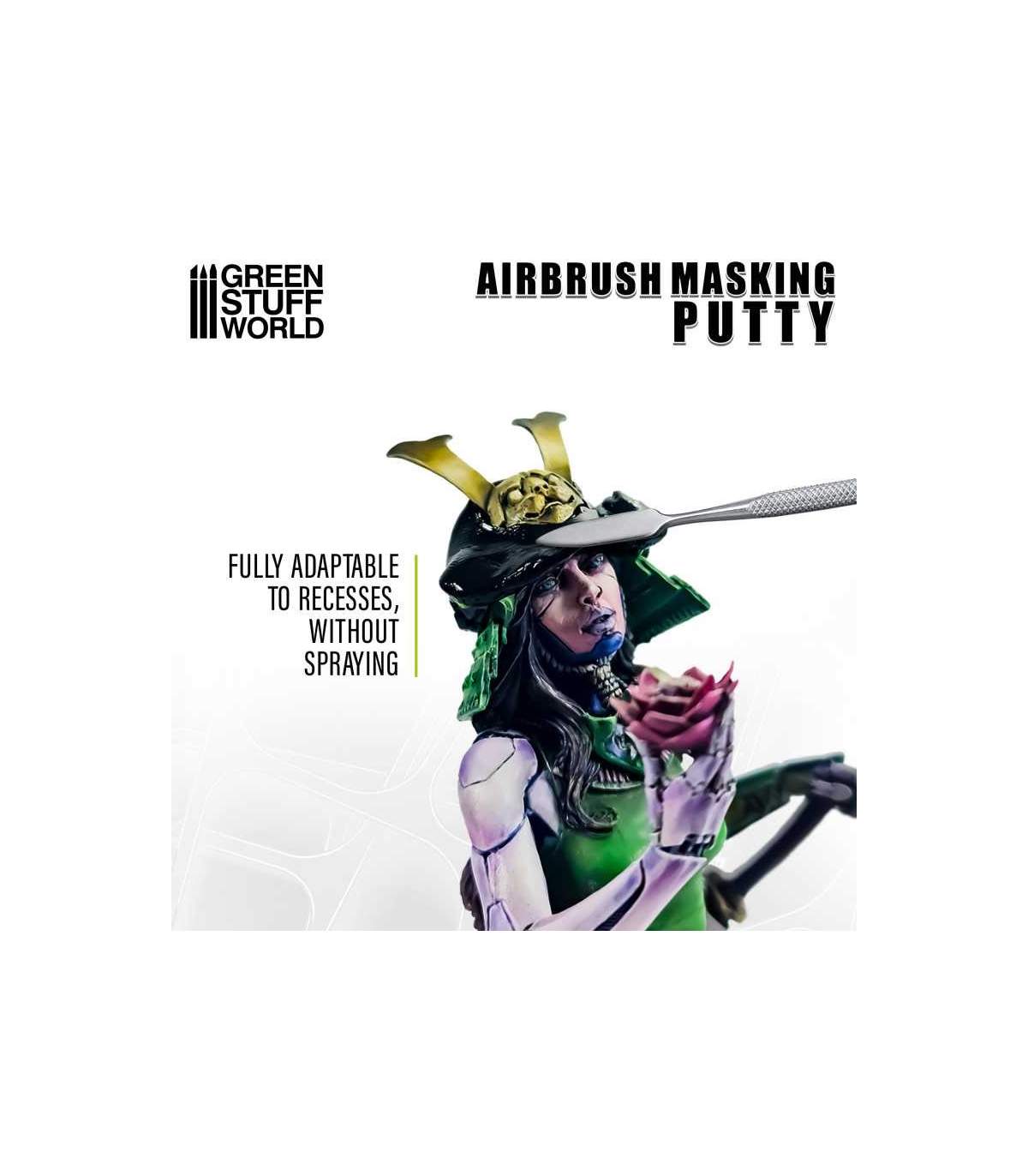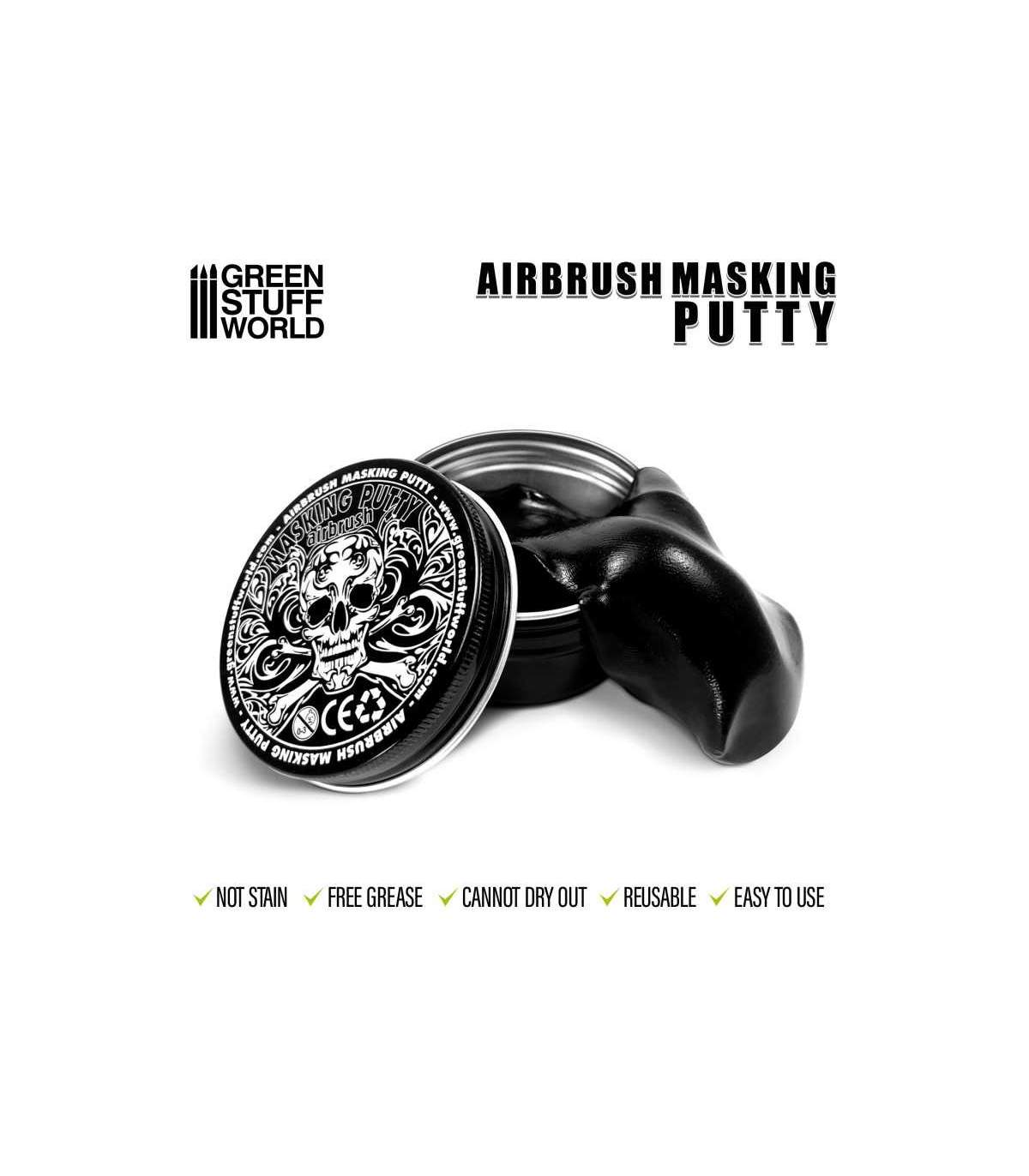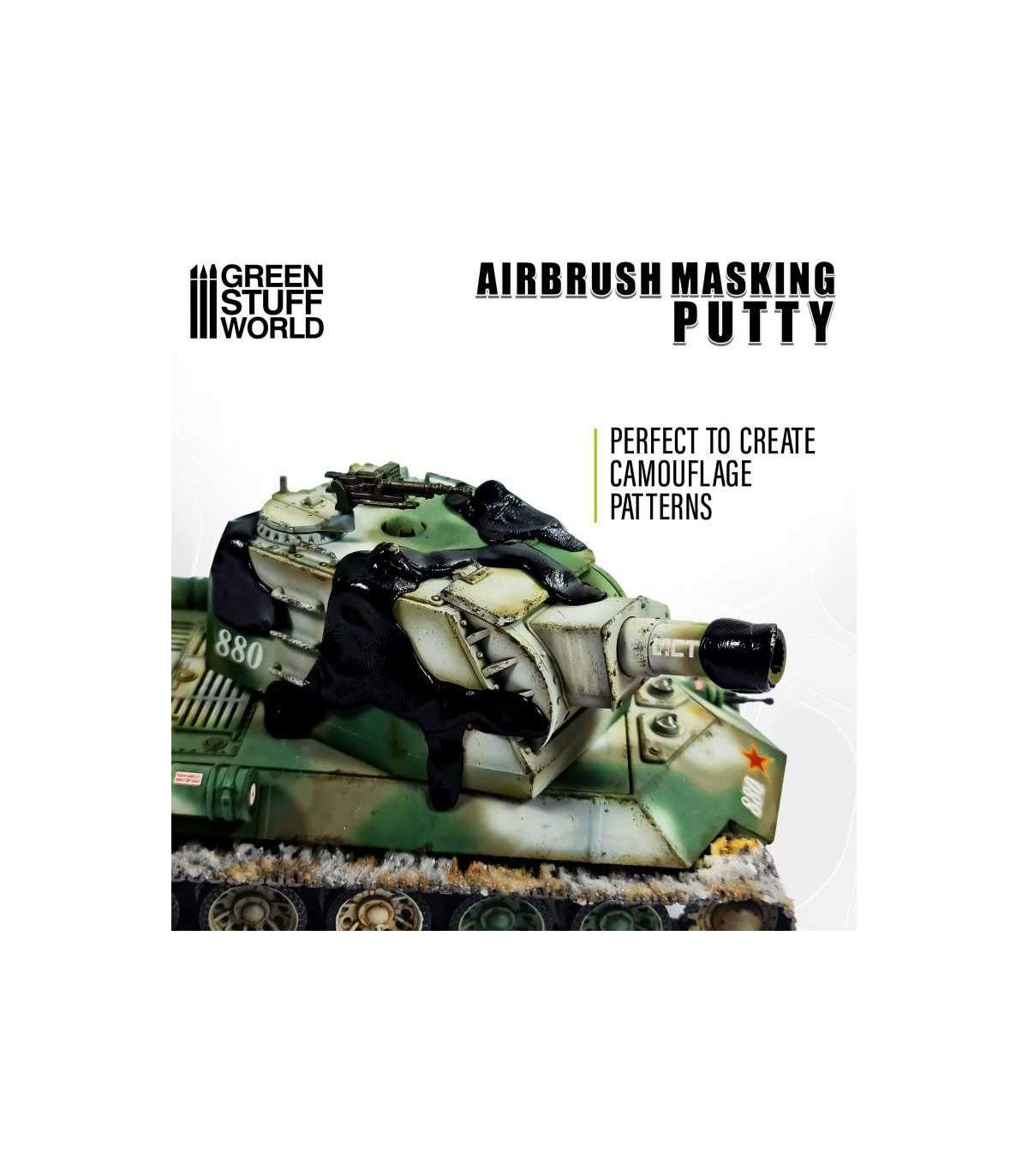 La masilla de enmascarar para aerógrafo no es un producto destinado a ser rociado. Es un material ultra flexible parecido al chicle, que permite enmascarar zonas y relieves complejos, al pintar con aerógrafo.
