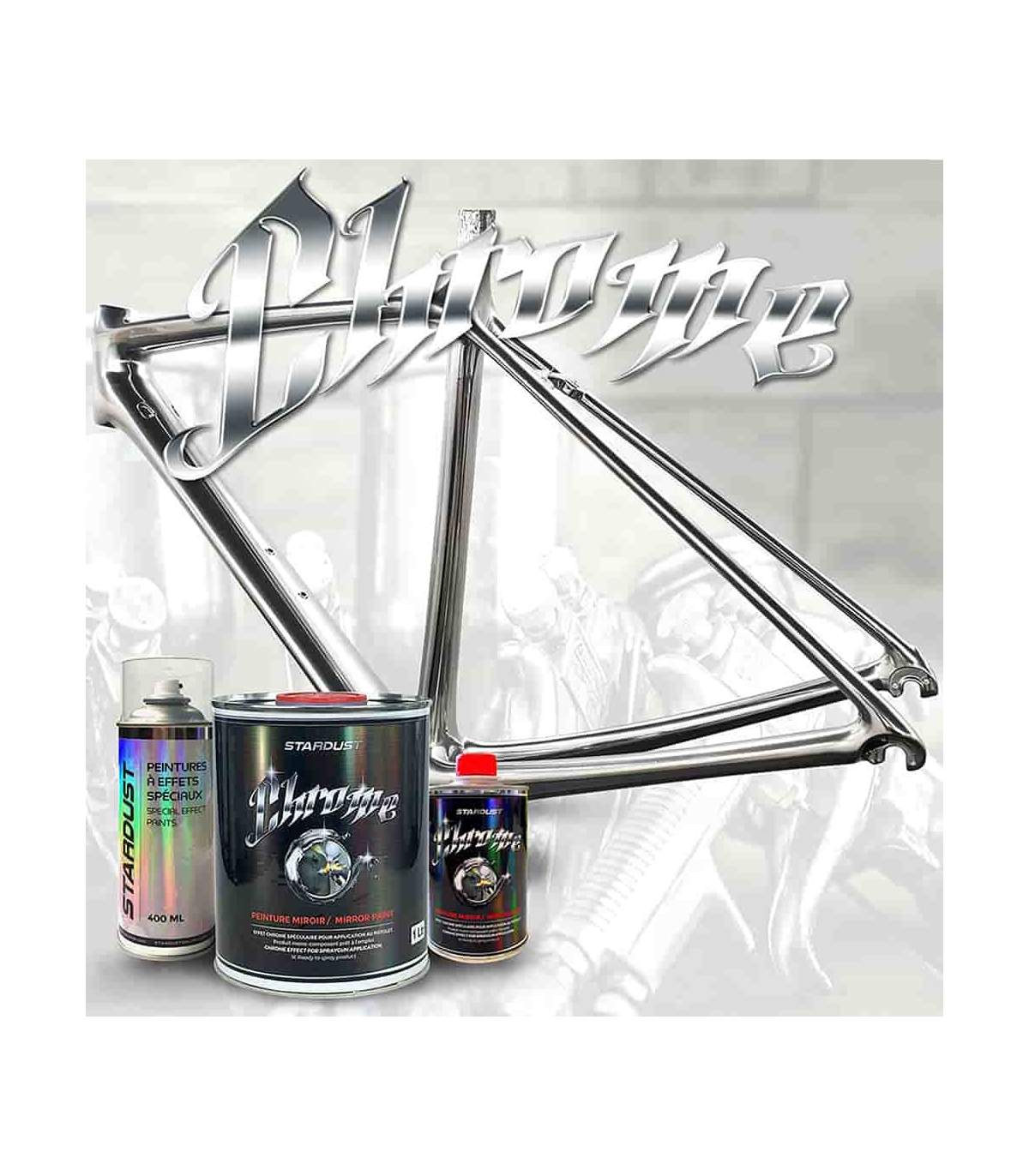 El aspecto cromado se realiza en una bicicleta gracias a la pintura cromada. Se trata de una pintura líquida única, a base de partículas de aluminio perfectas, que produce un efecto espejo si se aplica sobre una subcapa especial.