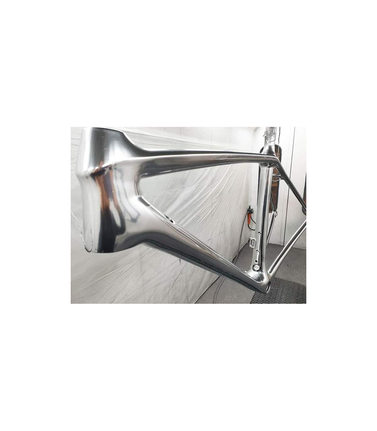 Aviso: el procedimiento de pintura cromada para bicicleta proporciona un aspecto estético muy bonito, pero supone una mayor fragilidad, especialmente en los impactos, que pueden desencadenar el despegue. Al final de la página encontrará un truco para garantizar un mayor poder de agarre.
