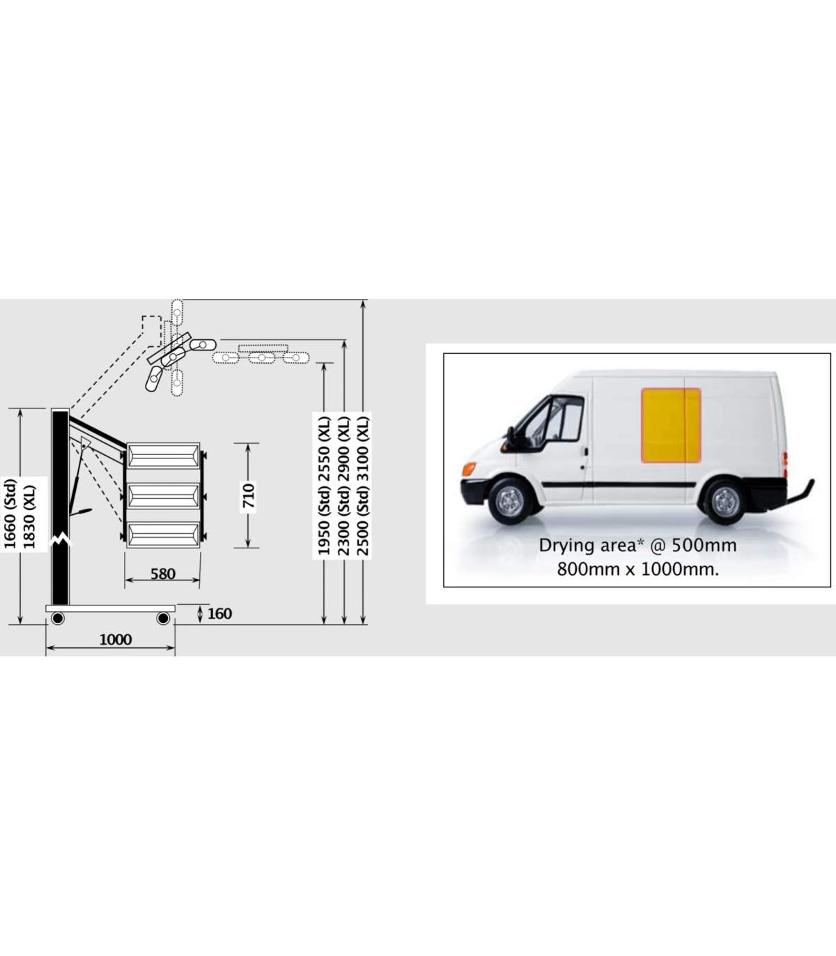 Los secadores infrarrojos de 3kW están compuestos por brazos plegables y ajustables, que se pueden bloquear en la posición ideal alrededor de las formas de los vehículos y las áreas de retoque de pintura.