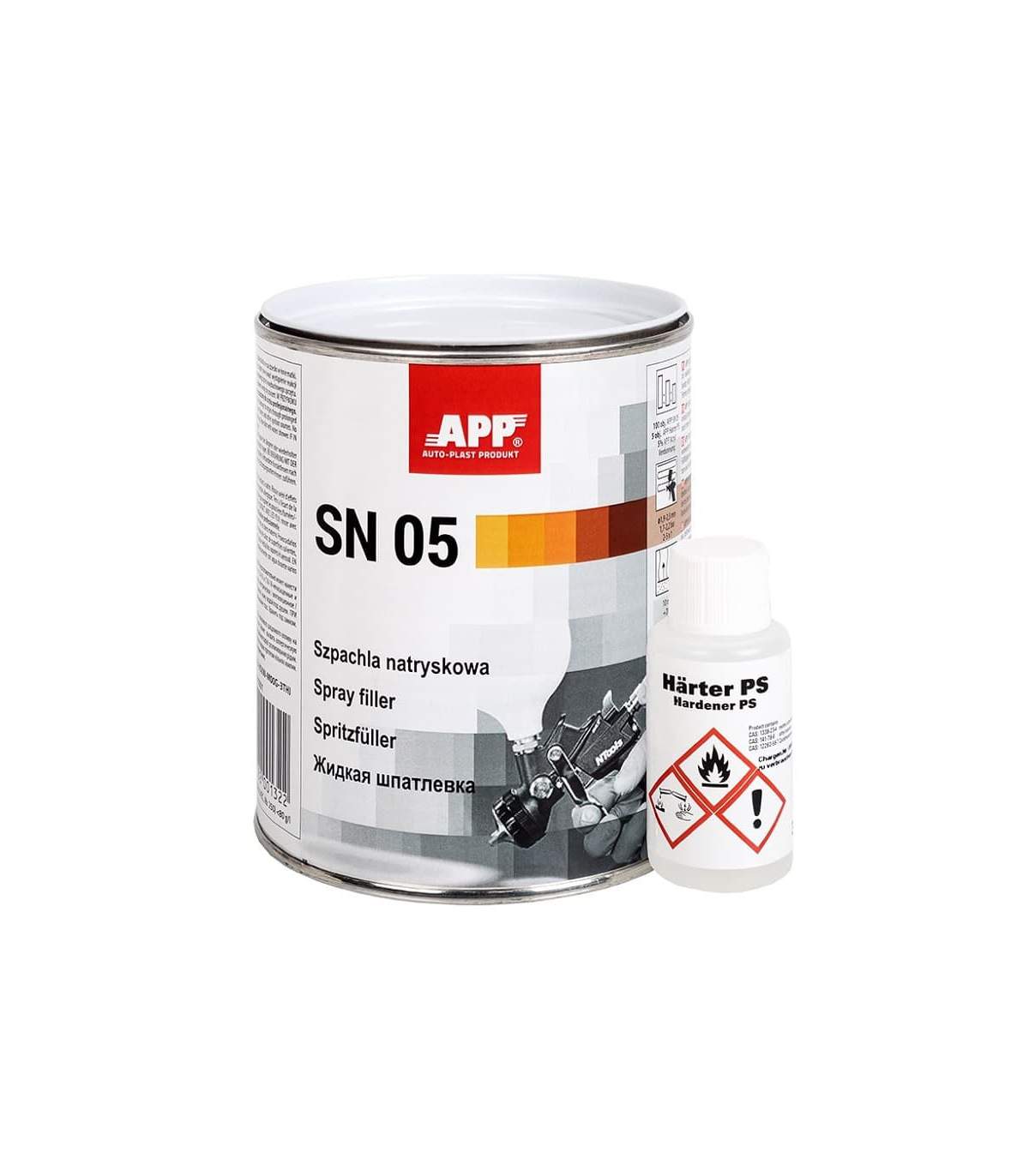 La masilla líquida SN05 es una masilla bicomponente de marca APP para una aplicación con pistola y tamaño recomendado de la boquilla de 1,7 a 2,5 mm.