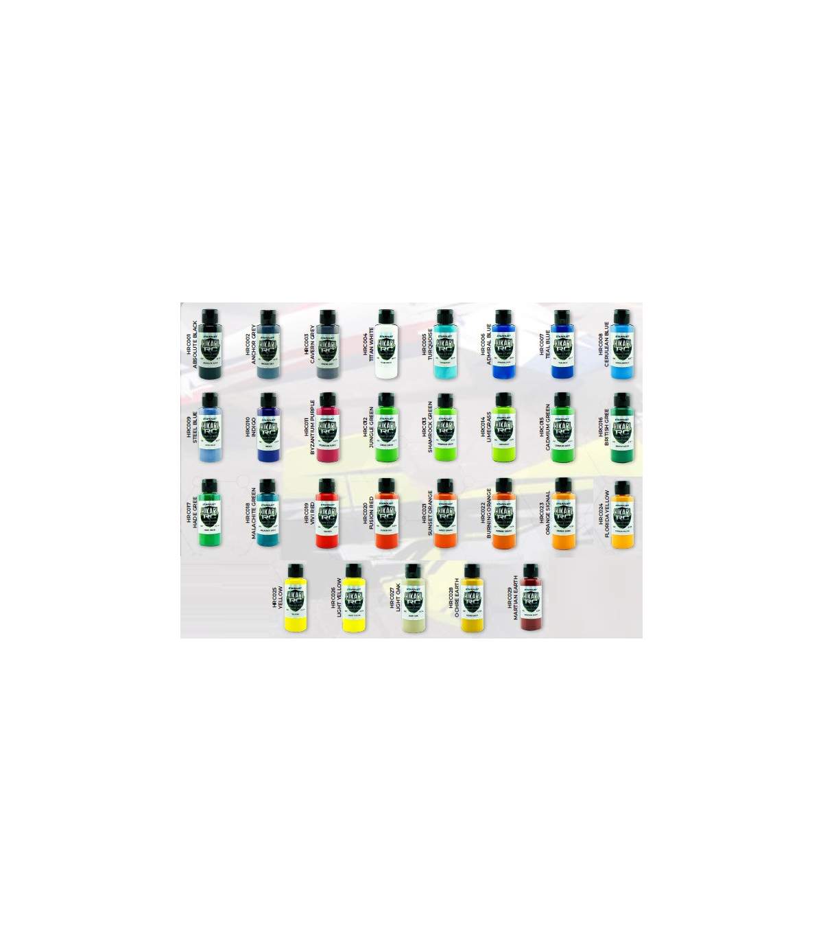 Esta serie «Racing» para el grafismo está formada por 31 tintas opacas con colores vivos, destinados a decorar los modelos RC de carreras.