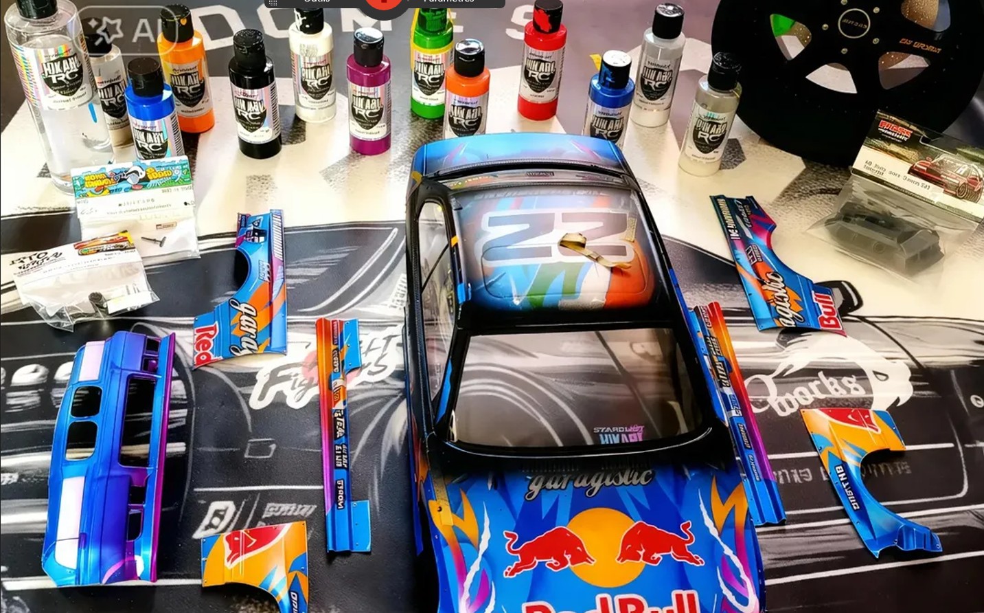 Para completar su arsenal de pintura personalizada en modelos RC, descubra nuestras pinturas con efectos nacarados y metalizados, además de nuestros productos auxiliares, como la capa de protección anticarburante, además del producto de enmascaramiento líquido.