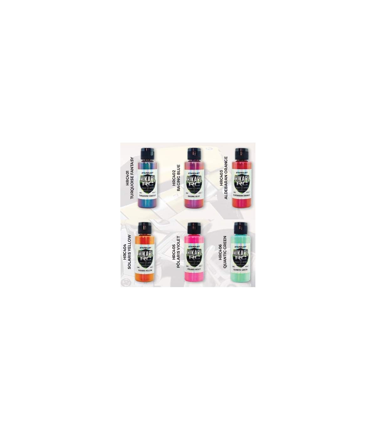 Las pinturas Hikari RC Scarabeus tienen una fórmula única, especialmente estudiada y probada para las condiciones extremas de uso que sufren los motores de radio control durante las carreras. Con las pinturas clásicas para aerógrafo, es difícil obtener una garantía de adherencia o incluso, un buen nivel de adherencia en el Lexan®.
