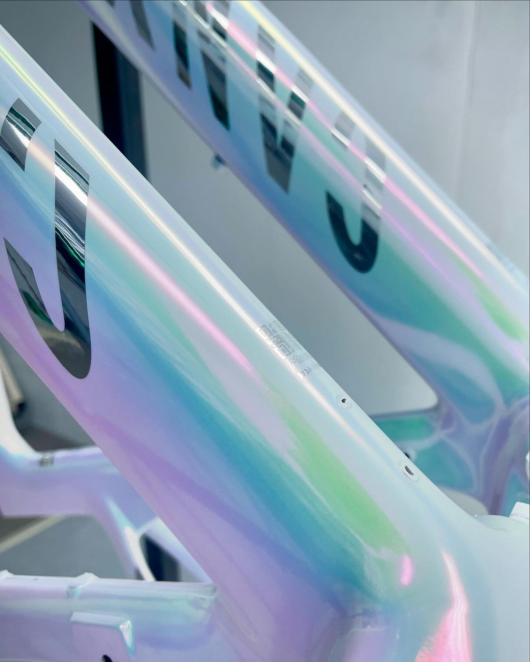 La técnica es adecuada para cuadros de bicicleta, cascos, depósitos de motos, botellas y frascos.