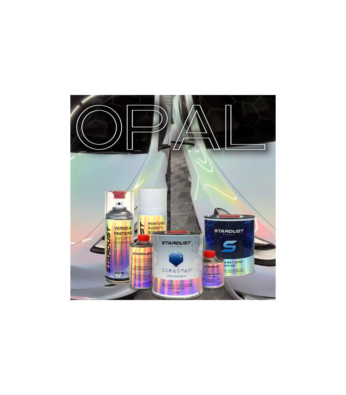 El efecto especial OPAL de Stardust es una pintura nacarada transparente formada por partículas muy finas (10-40 o 10-60 µm) que reflejan la luz para enviar un efecto de color. El reflejo de color varía dependiendo del ángulo de visión. Una pintura opal puede mostrar de dos a cuatro colores dependiendo del ángulo de visión. Los colores secundarios se aprecian en los ángulos 0-30°.