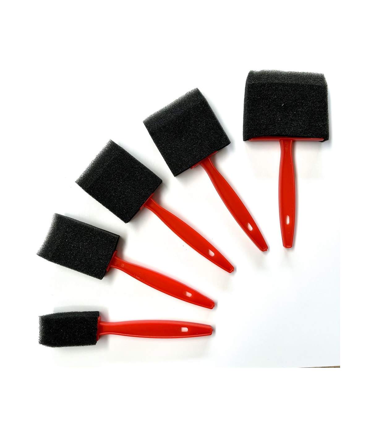 1 juego de 5 pinceles de espuma con mango de plástico rojo