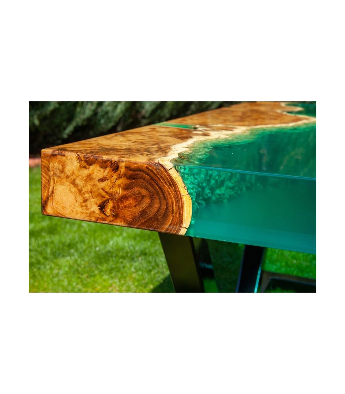 No es recomendable añadir nuestro aditivo mateante a la resina epoxi. Recomendamos, tras el vertido y el secado, lijar completamente con grano 400 para nivelar y perfeccionar la superficie, y luego aplicar un barniz mate. Por supuesto, también es posible aplicar un barniz brillante.