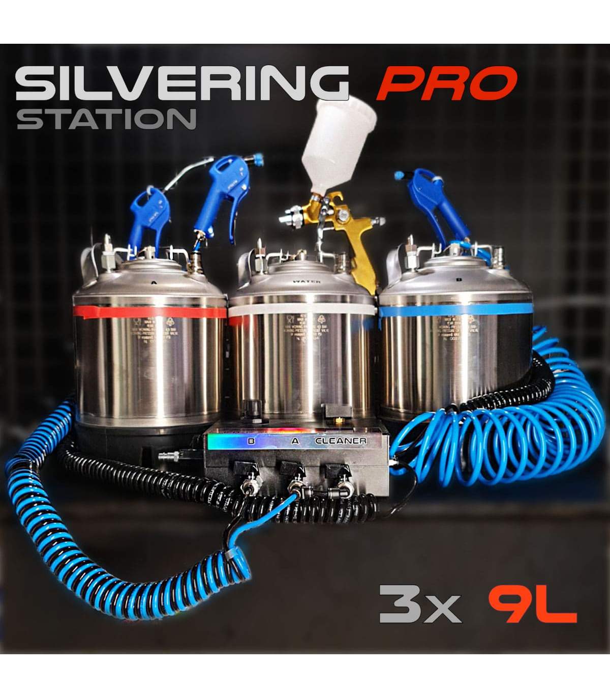 El pequeño formato de la estación de pulverización de los productos de plateado con sus 3 depósitos de 9L permite cromar todo tipo de piezas con un excelente rendimiento de hasta 2-4 m².